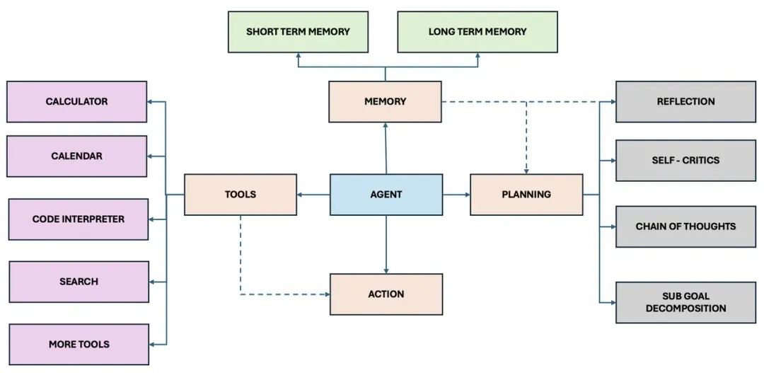 - 长期记忆:将短期记忆进行整理储存,通常利用外部向量存储和检索实现,为 Agent 提供保留和召回长期信息的能力